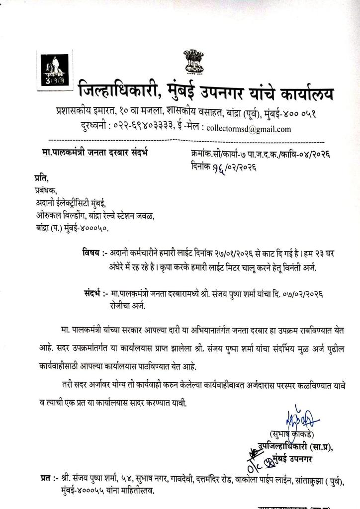 Gondevi ward 89, Fully 23 house lights off Please restart house lights as per billing address your complent number 1004191987 dt. 28/01/2026 Student exams started @Adani_Elec_Mum @mybmcWardHE @gautam_adani @TataPower @fpjindia @abpmajhatv @TV9Marathi @OfficeofUT @ShivSenaUBT_