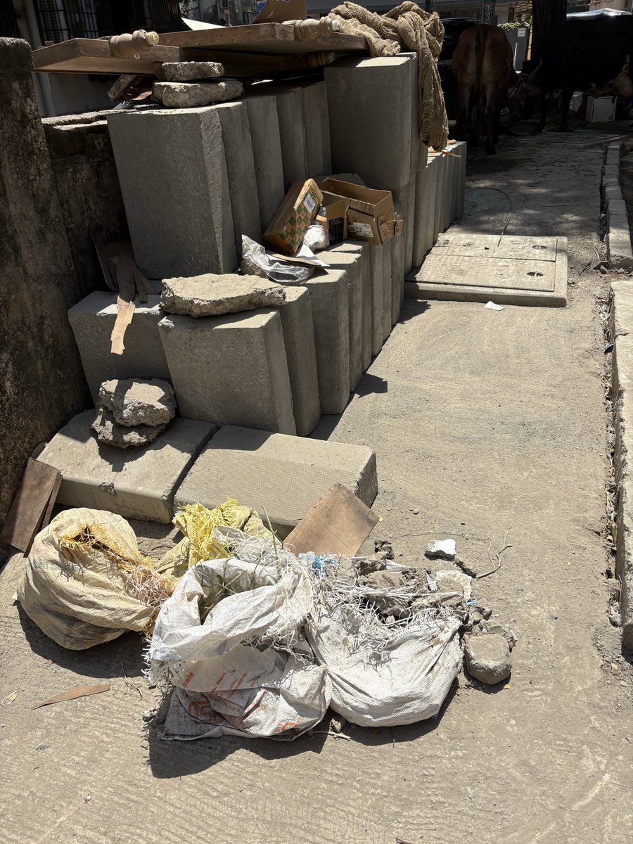 @mybmcWardHW The road outside Hinduja Hospital Khar is being concretised , which is good. Sadly one side of the foot path is used for storing cement sand etc. and on the other side cows + their owners. How do you expect patients to walk safely. 😒😒