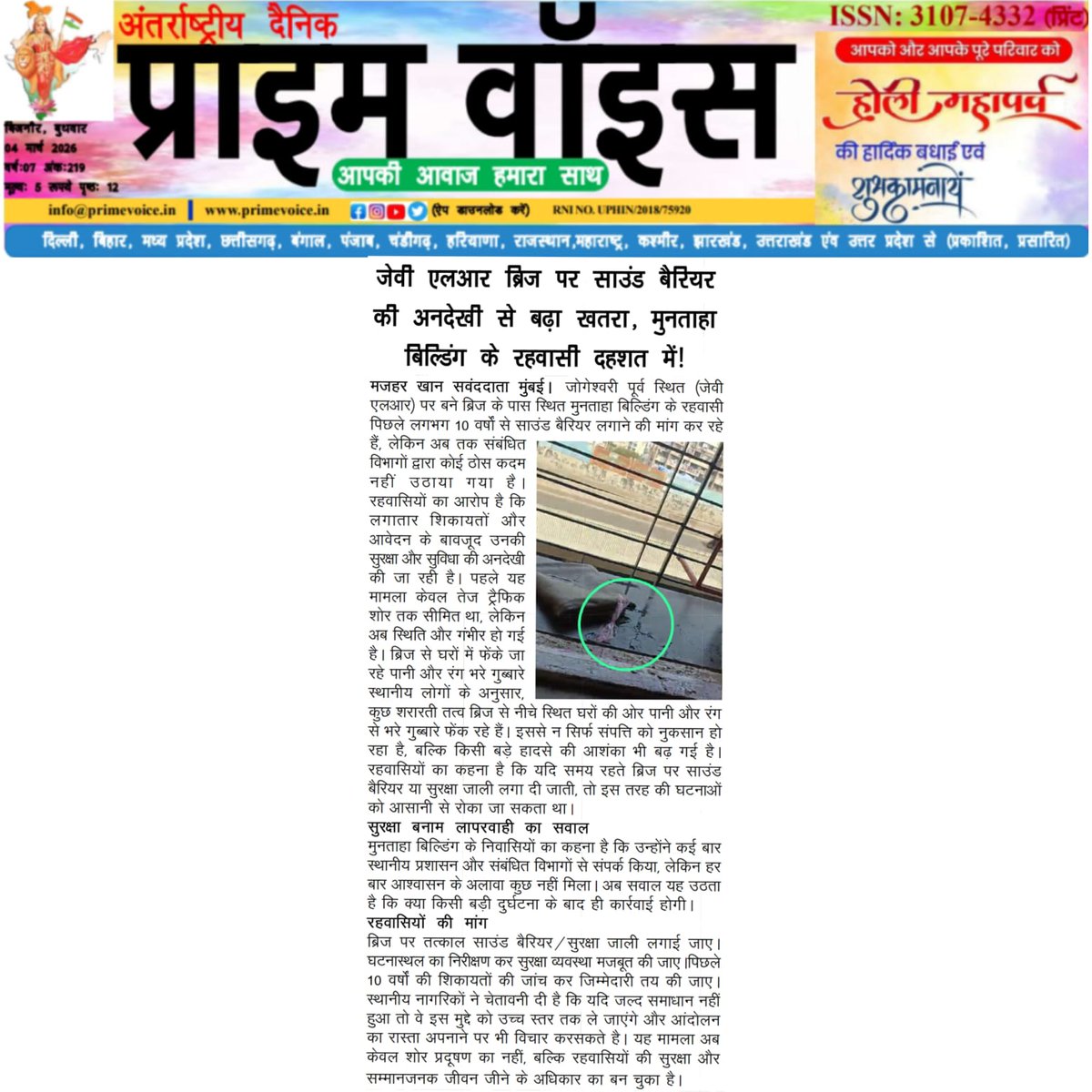 Sincere request to @mahaengineerin1 @MMRDAOfficial @mybmc JVLR Bridge se hamari society (Muntaha Bldg ) mein Holi ke rang se bhari thailiyan fenki ja rahi hain. Pichle 10 saalon se complaint aur letters dene ke baad bhi yahan 'Sound Barrier' nahi lagaya gaya hai. @MumbaiPolice