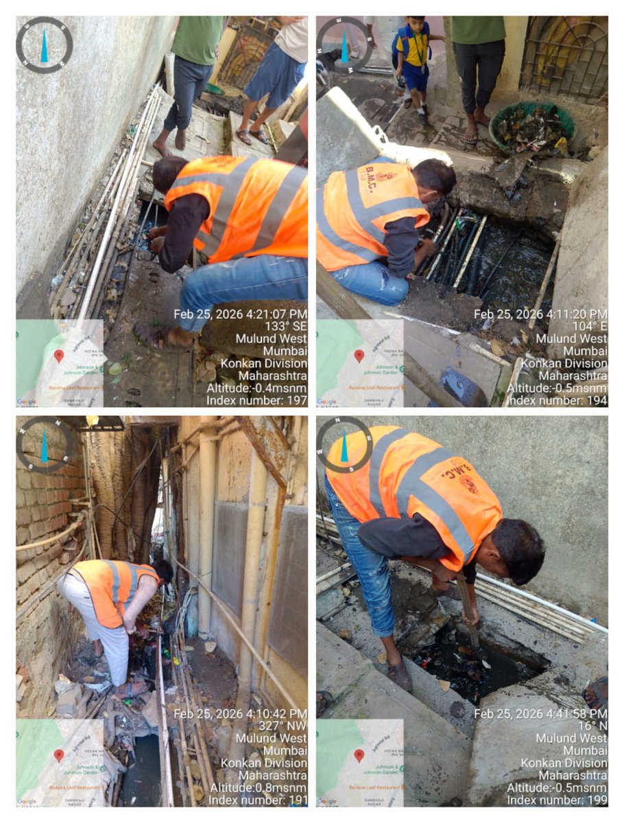 @VNatekarv046 @APandey_Ji @mybmc @prrakesh295 @ArvindY45905912 @Charanssapra @CMOMaharashtra @HarishGupta_INC @iJITESHSHARMA @INCIndia @mayor_mumbai @mulund_info The drainage cleaning work has been completed by our team. Further action regarding the complaint has been forwarded to the concerned authority.