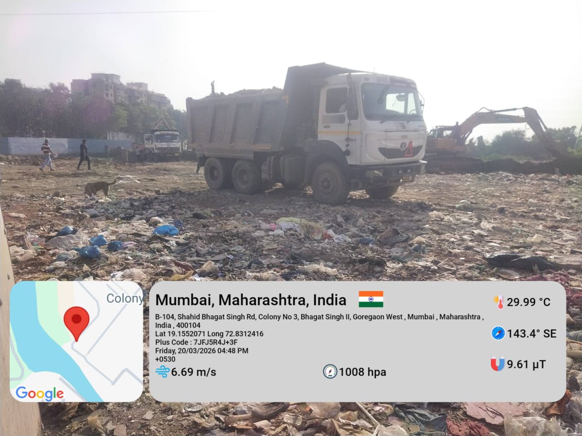 गोरेगाव मेट्रो स्टेशन जवळ भगतसिंग नगर 3 येथून आतमध्ये मागील 4 दिवसांपासून बेकायदेशीरपणे माती / राडारोडा टाकला जात असून आजपर्यंत तब्बल 250 ते 300 डंपर भरणी करून येथे असलेल्या झाडांवर भरणी करण्यात आली आहे. @mybmc व @mybmcWardPS तसेच @BangurNagarPS यांनी तात्काळ दखल व कारवाई करावी.