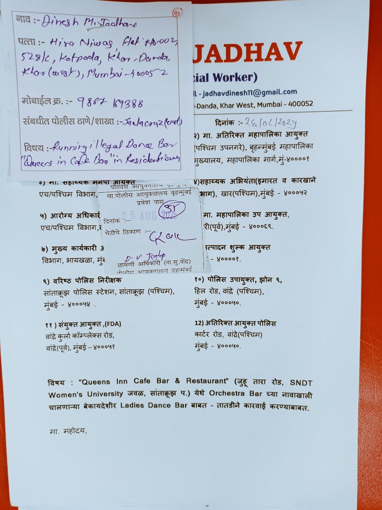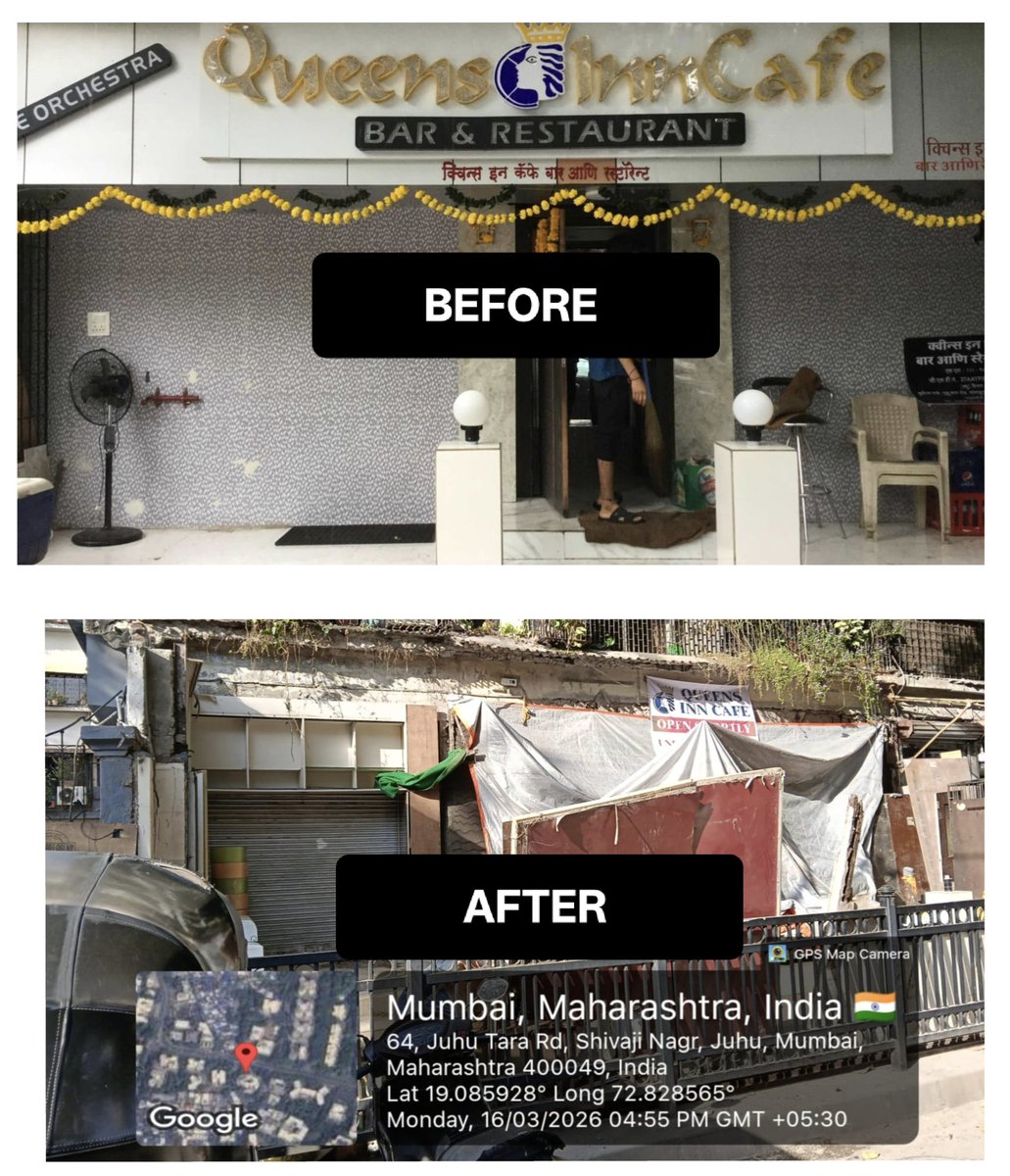 🚨 अनधिकृत कृत्यांवर अखेर कारवाई! Queen Cafe Bar वर तोडक कारवाई केल्याबद्दल मनःपूर्वक धन्यवाद 🙏 @mybmc @mybmcwardKW "Queen's Inn Cafe Bar, Shop no, 3, Juhu Tara Rd, Juhu Koliwada, Juhu, Mumbai - 400049" येथे Orchestra Bar च्या आड “Ladies Bar” चालवणे हे अत्यंत गंभीर आणि समाजासाठी धोकादायक होते. सांताक्रूझ पोलिसांकडे वारंवार तक्रारी, Control Room ला कॉल, BMC व Excise विभागाकडे पाठपुरावा — तसेच Commissioner of Police यांच्या जनता दरबारमध्ये हा गंभीर विषय मांडला — या सर्व प्रयत्नांनंतर ही कारवाई झाली. ही आमची छोटीशी जीत आहे, पण एक मोठा संदेश देते — “कायद्या पुढे कोणीही श्रेष्ठ नाही.” स्थानिक नगरसेवक जी यांचे आभार....माननीय आमदार @ShelarAshish साहेब यांचे मनःपूर्वक धन्यवाद आणि माननीय खासदार @VarshaEGaikwad ताई यांचे विशेष आभार ....स्थानिक रहिवासी आणि आमच्या संपूर्ण टीमकडून सर्व संबंधित विभागांचे धन्यवाद 🙏 #Justice #Mumbai #BMC #MumbaiPolice #ActionTaken #RuleOfLaw #Santacruz #CitizensPower @CMOMaharashtra @mieknathshinde @iYogeshRKadam @MumbaiPolice @DGPMaharashtra @CPMumbaiPolice @ani_digital @ANI @lokmat @LoksattaLive