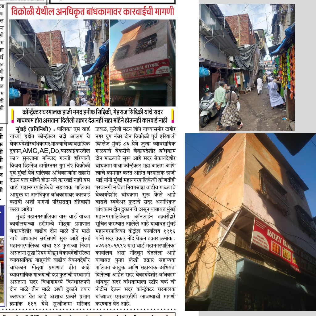 मा.@CMOMaharashtra @mieknathshinde @AjitPawarSpeaks @MahaDGIPR @mybmc @mybmcWardS वार्ड यांच्या हद्दीत कॉन्ट्रॅक्टर बद्रीआलम चे बेकायदेशीरबांधकाम3 माळ्याचे दुकान,AMC, AE,Do,कारवाई करतील का? सुनजामा मज्जिदगल्ली हरियालीव्हिले टागोरनगर ग्रुप नं2 विक्रोळी मुंबई, कारवाई कधी करणार?