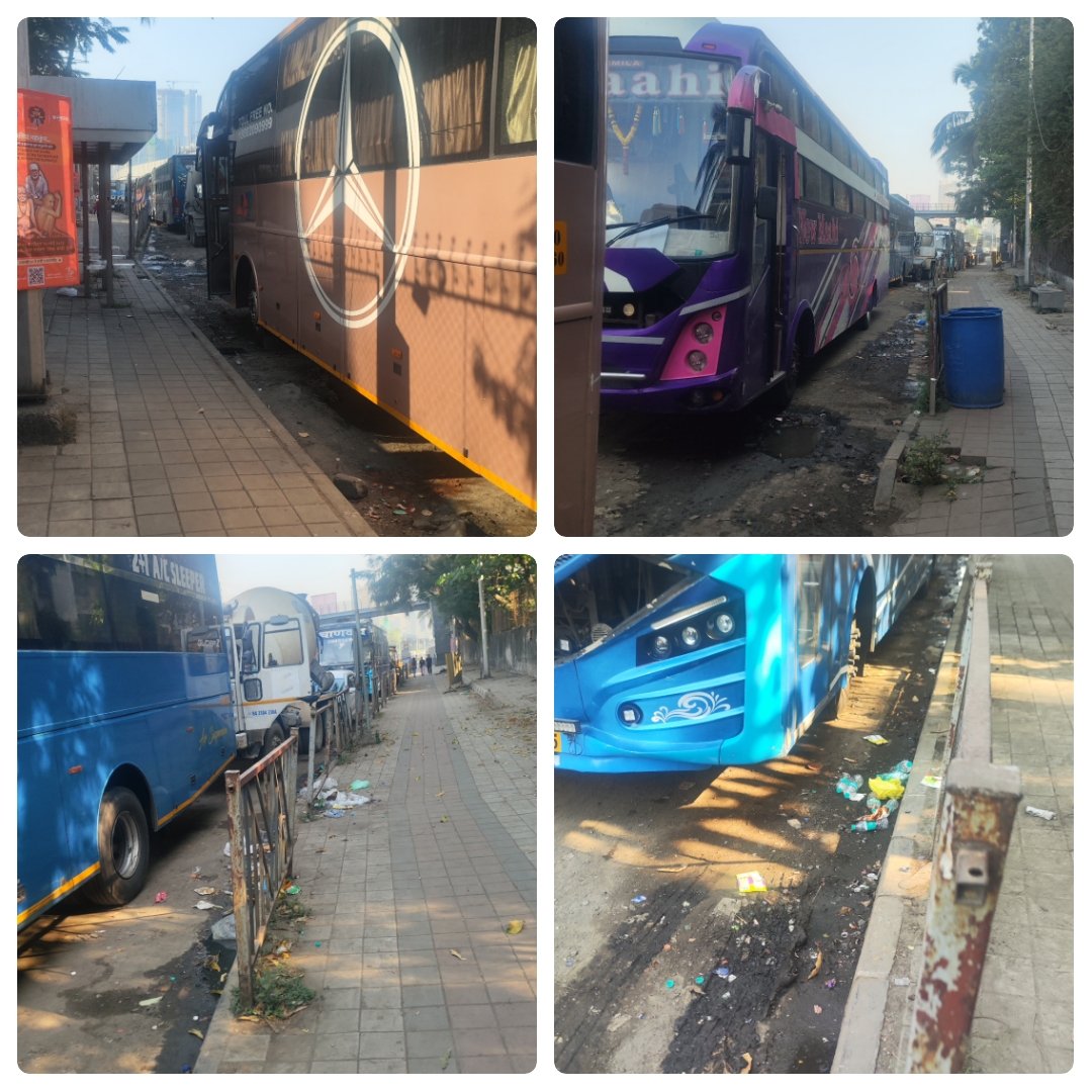 @mybmcWardRN @mybmcWardRC No action @mybmc leads to dirtying of Foothpaths & Service road from GokulAnand #Dahisar-E towards #SGNP Borivali-E The clean the Buses with water & dump garbage leads to pests @mybmcSWM pl assist @MTPHereToHelp parking causes congestion on the crossroad