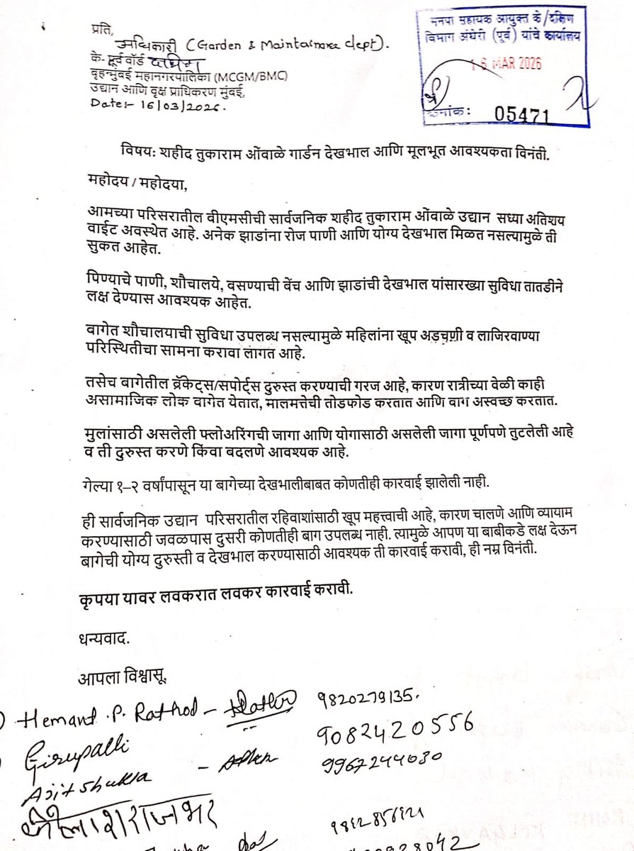 @mybmcWardKE Shahid Tukaram Omble park opposite Apollo Ind. Estate Andheri East Mumbai 400093 needs urgent attention for public amenities as letter attached with this tweet hence it is my humble request to concerned department kindly check & do needful for citizens hope you will