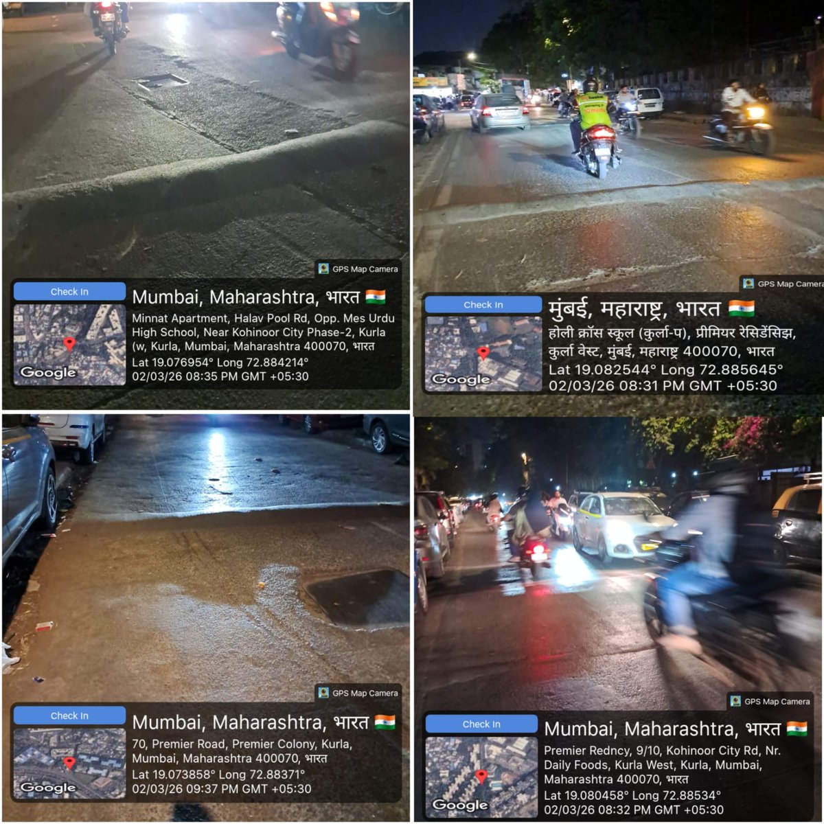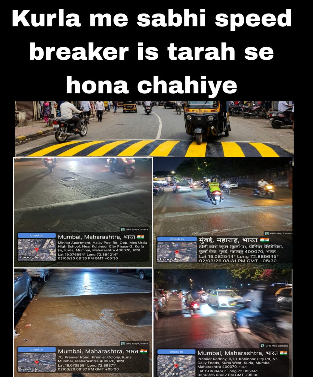 Kurla mein speed breakers par sirf saadha paint nahi, balki Reflective Thermoplastic Paint lagayein.🌟 Taaki raat ke andhere mein ye chamkein aur accidents na hon. Sadharan safed rang mitti mein chhup jata hai.⚠️ @mybmc @mybmcWardL @MumbaiPolice #Kurla #RoadSafety #BMC Ameer.🙏