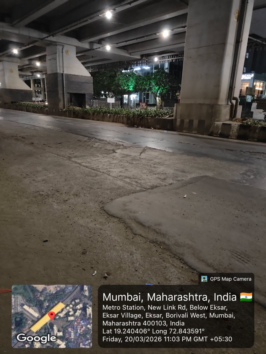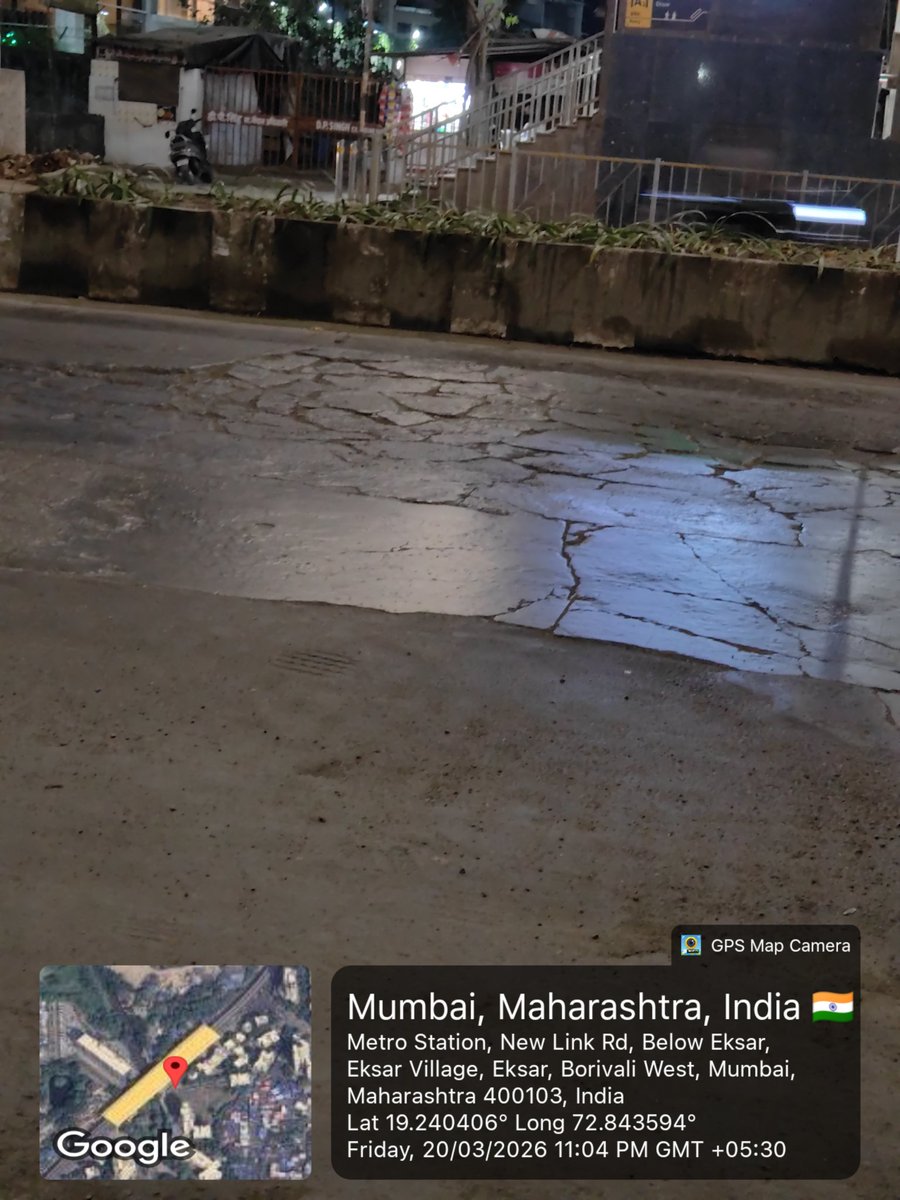 हे काय आहे?एकसर मेट्रो स्टेशनच्या खाली असे खराब रस्ते. @mybmcWardRC @mybmc