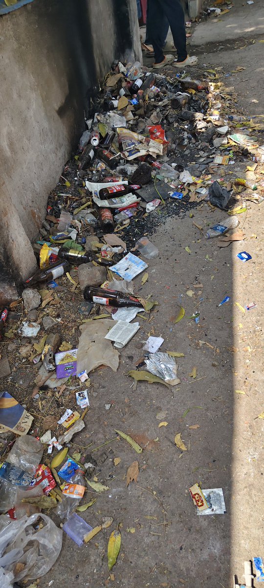🚨 तक्रार 🚨 गोरेगाव (पूर्व), संतोष नगर, जय भीम नगर येथील शिव शक्ती सोसायटी, शौचालय मार्ग येथे बिअर/दारूच्या बाटल्या व कचऱ्याचा ढिगारा साचला आहे. 🚮🍾 फुटलेल्या काचांमुळे नागरिकांना चालताना अडचण व धोका निर्माण झाला आहे. कृपया कारवाई करावी. 🙏 @mybmc @MumbaiPolice @mybmcWardPN
