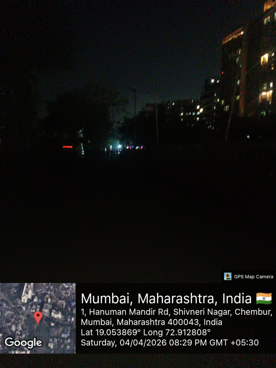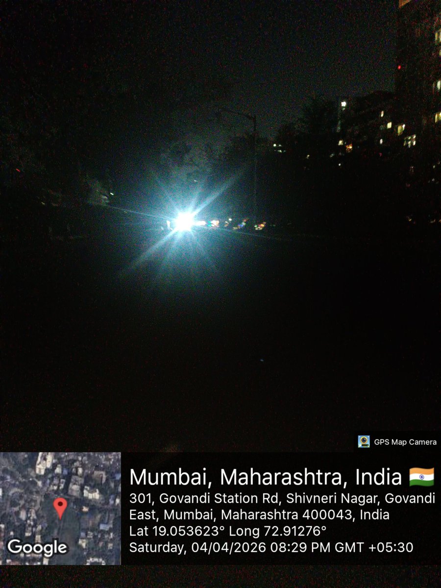 गोवंडी पूर्व येथील लिज्जत पापड कंपनी समोरील हनुमान मंदिर रोड येथील पथदिवे गेले १ महिना चालू नाही. या रस्त्याने शिवनेरी नगर आणि महादेव पाटील वाडी येथील नागरिक प्रवास करतात. अंधार असल्यामुळे एखादी दुर्घटना अपघात घडण्याची शक्यता आहे. @GovandiPS @mybmc @Adani_Elec_Mum @mybmcWardME