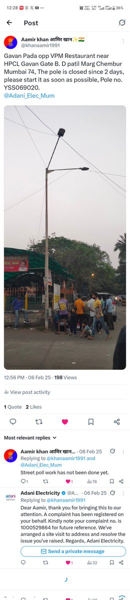 Complaint No. 1000529864 (06 Feb 2025) – It’s been 17 months and the street light is still not working (Gavan Pada, Chembur). Only assurances, no action on ground. Immediate resolution required.@mybmcWardME @mybmc @Adani_Elec_Mum @MumbaiPolice @MSEDCL @CMOMaharashtra