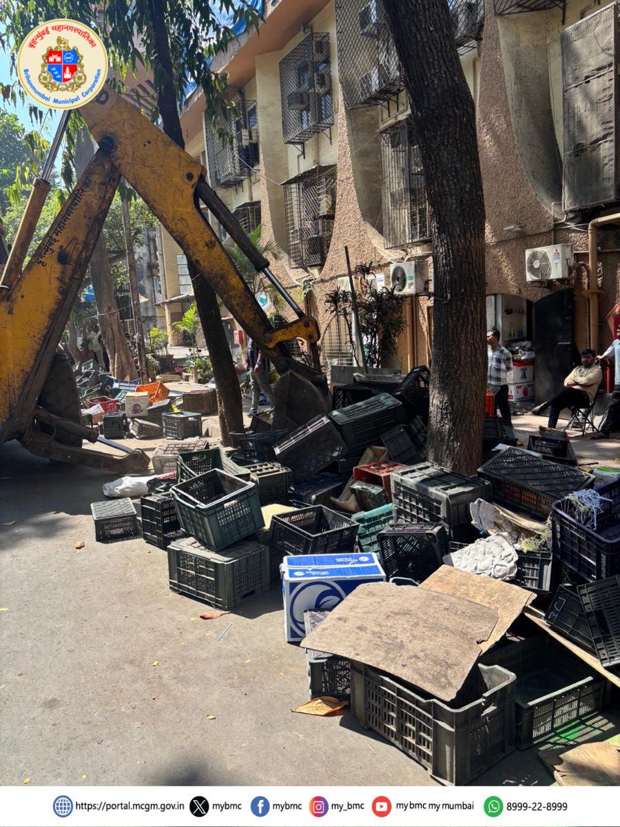 बृहन्मुंबई महानगरपालिका उपआयुक्त (परिमंडळ ७) श्रीमती भाग्यश्री कापसे मॅडम तसेच ‘आर दक्षिण’ विभागाच्या सहायक आयुक्त श्रीमती आरती गोळेकर यांच्या मार्गदर्शनाखाली कांदिवली (पूर्व) येथील आशा नगर मार्ग परिसरात अतिक्रमणे तसेच अनधिकृत फेरीवाल्यांविरोधात संयुक्त कारवाई करण्यात आली.(१/३)