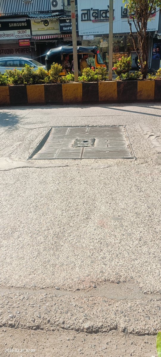 BMC H West - At Hill Road Bandra West near Balaji hotel, opp. Cell City shop there is an iron cover just between the main road. The tyres can burst and two wheelers can fall. Pls align the same. @mybmcWardHW @mybmc @ShelarAshish @VirendraMhatre_ @kishorbpunwat @AshishPanBandra