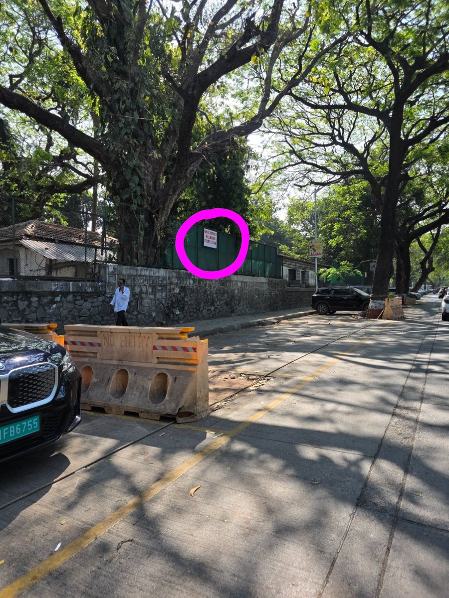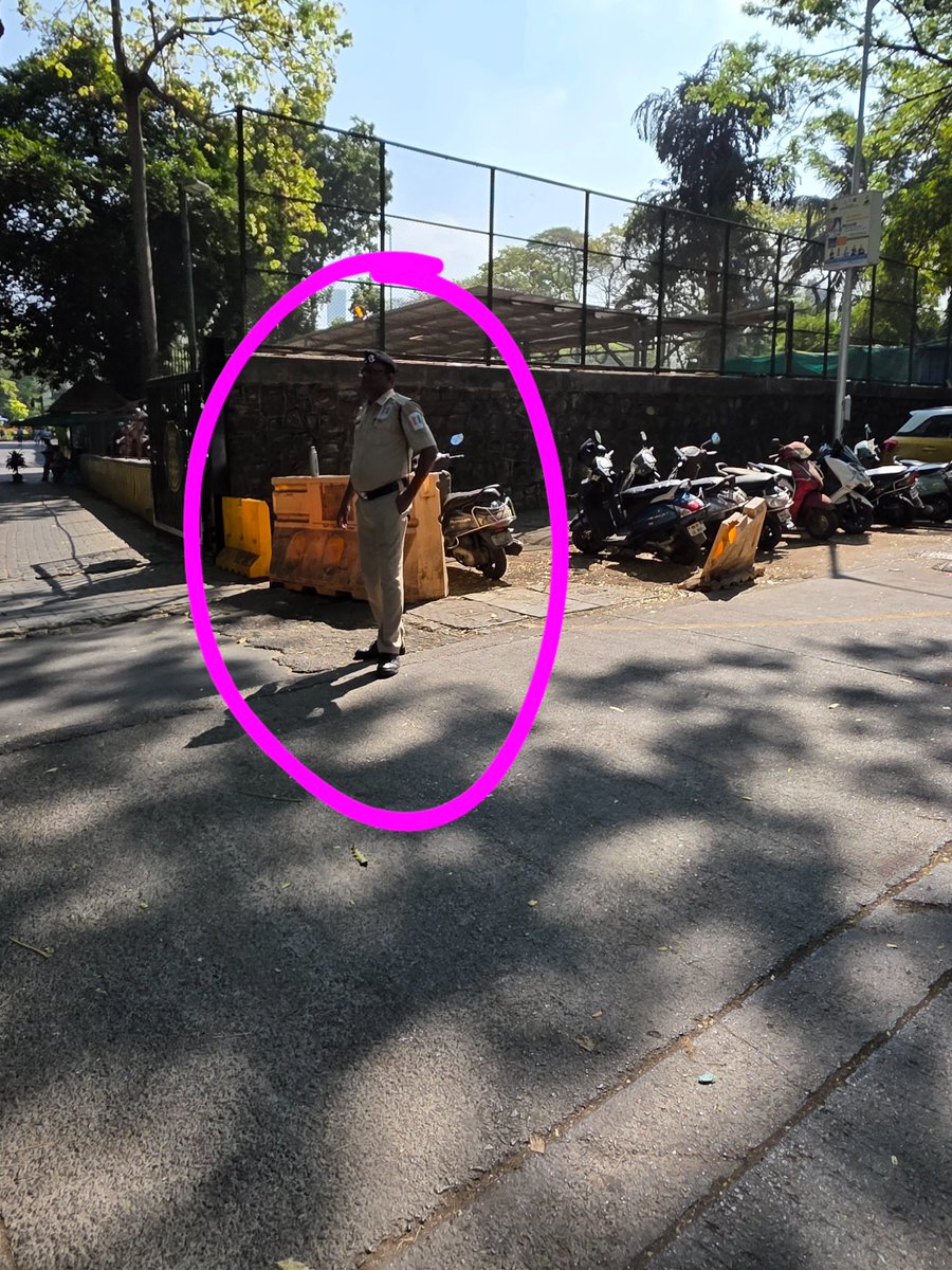 Entire public road cordoned for private Wellingdon Club (Dadasaheb Vichare Marg, Tardeo) members' parking. Legal? Security guard wearing Mumbai Police–style uniform & cap. Allowed to impersonate? @MTPHereToHelp @MumbaiPolice @CPMumbaiPolice @MyBMC @MyBMCWardD may look into it.