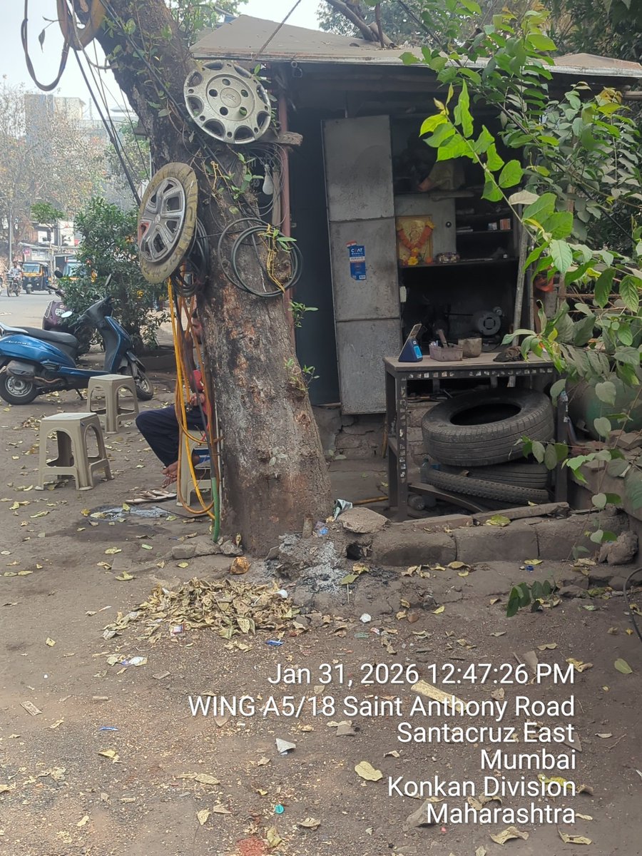 Illegal Tyre puncture shop on Road at the entrance to St. Antony Road,Kalina. Will Sr. Inspector Encroachment Vilas Desai act.@mybmcWardHE @VakolaPS @maha_governor @CMOMaharashtra @ShelarAshish @SagunNaik09