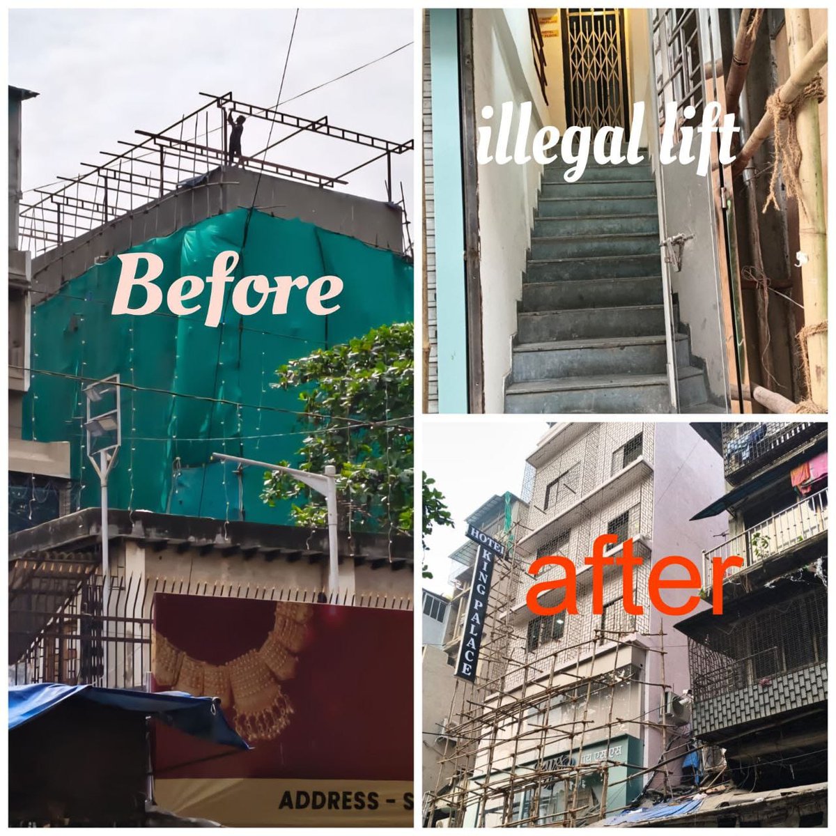 𝑩𝒖𝒊𝒍𝒅𝒊𝒏𝒈 𝑵𝒐.16, Narayan Dhruv Street, MCGM B Ward mein Residential Building ko Illegal Commercial mein convert karke 𝑯𝒐𝒕𝒆𝒍 𝑲𝒊𝒏𝒈 𝑷𝒂𝒍𝒂𝒄𝒆 chalaya ja raha hai, Unauthorized Lift aur Terrace Encroachment – 𝑨𝑴𝑪 𝑪𝒊𝒕𝒚 Ashwini Joshi 𝑴𝒂’𝒂𝒎 𝒔𝒆