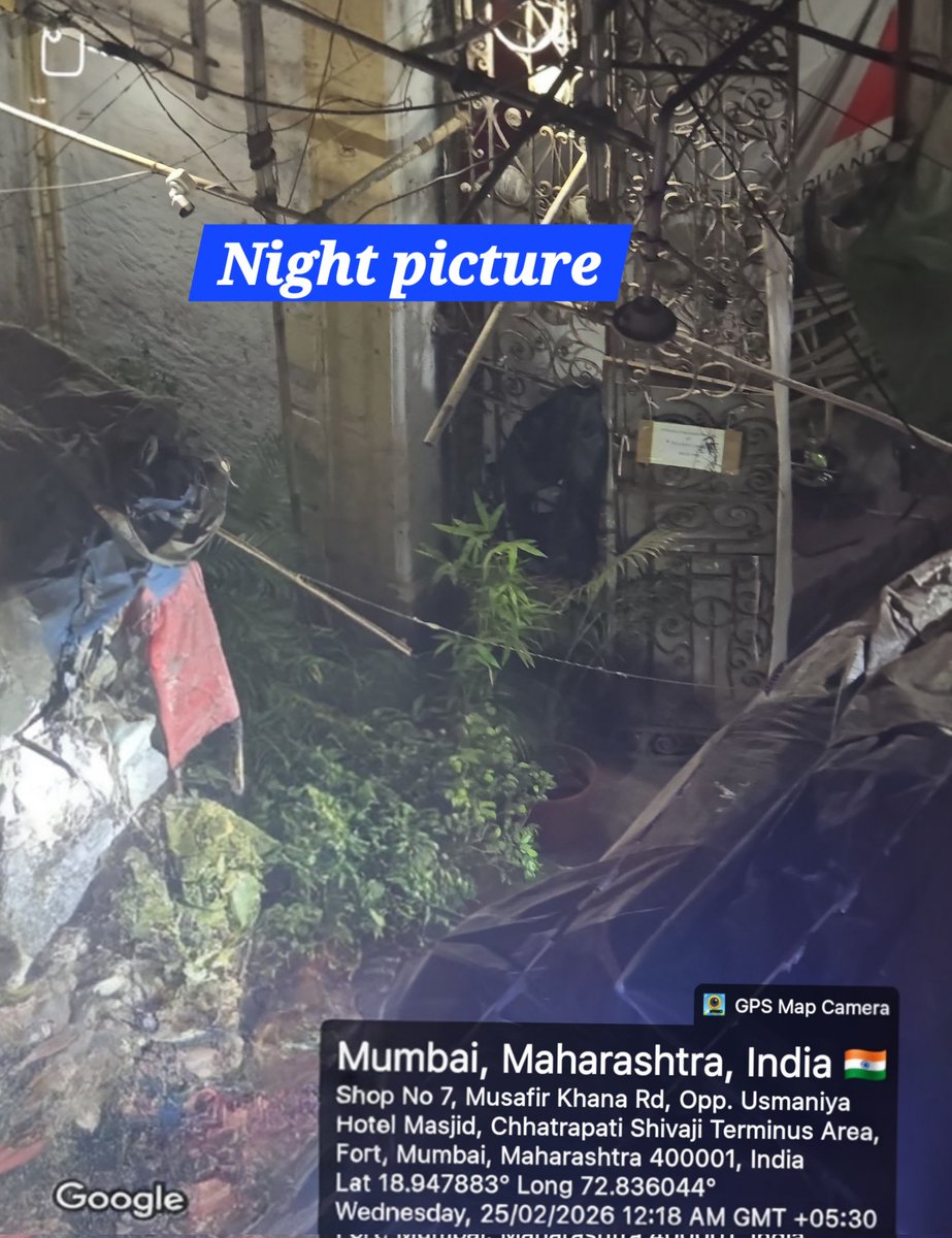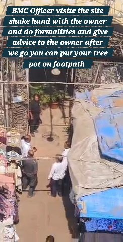 🚨 Remainder for Action Illegal Encroachment on footpath by blocking metal sheid and putting tree pot & installing bamboo scafholding by Radio hotel owner – Musafir Khana Road, Mumbai 400001. 🚨 - Unsafe bamboo scaffolding (rotting, risk of collapse in a high-density area)