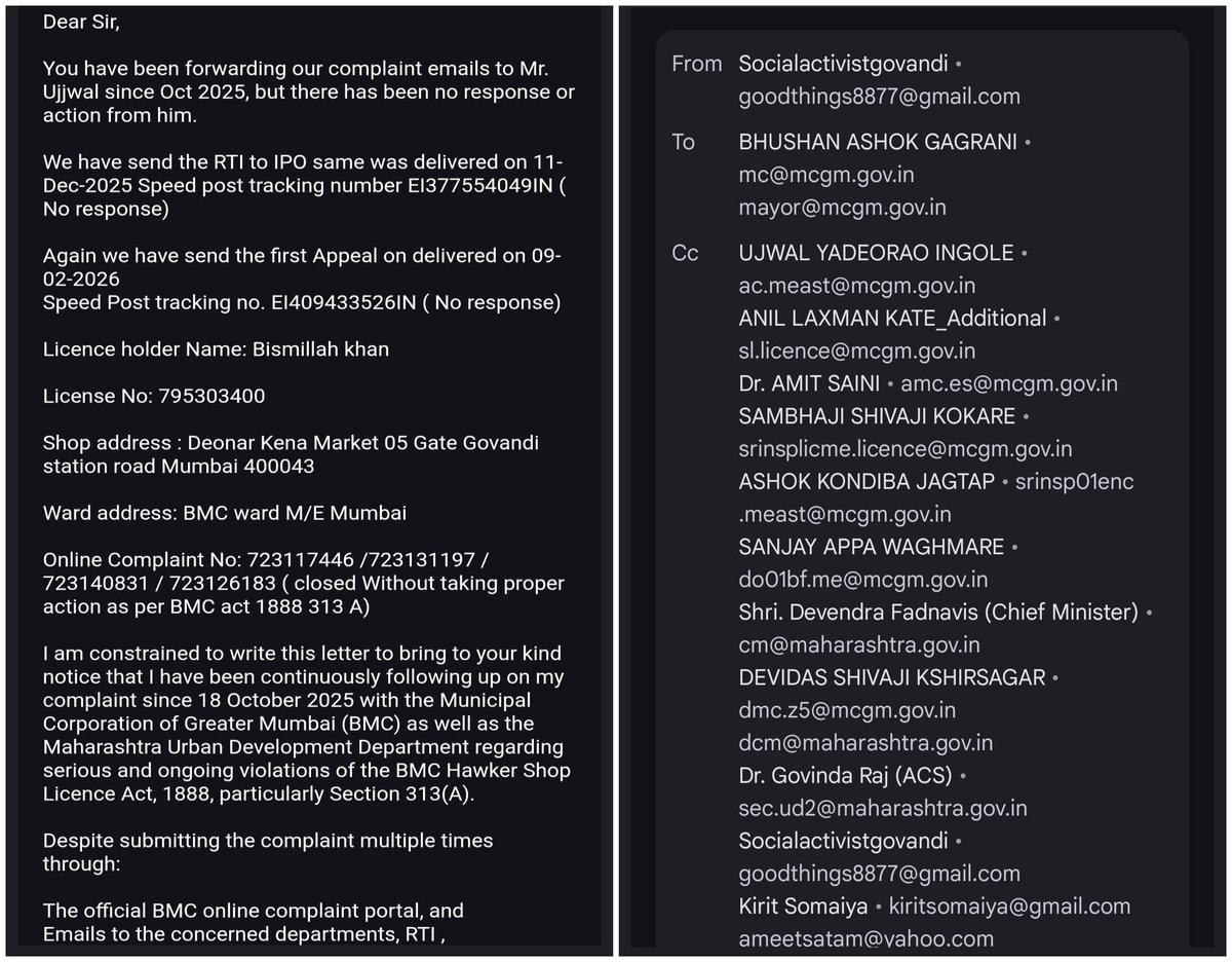 #corruption of BMC Honerable CM sir and Mayor Mam, I am taking a follow up with BMC Meast ward since Oct 25, Mr Ujwal ward officer, Mr Sambhaji licence department are ignoring my complaints and RTI @Dev_Fadnavis @TawdeRitu @mybmcWardME @mybmc Please refer image for details