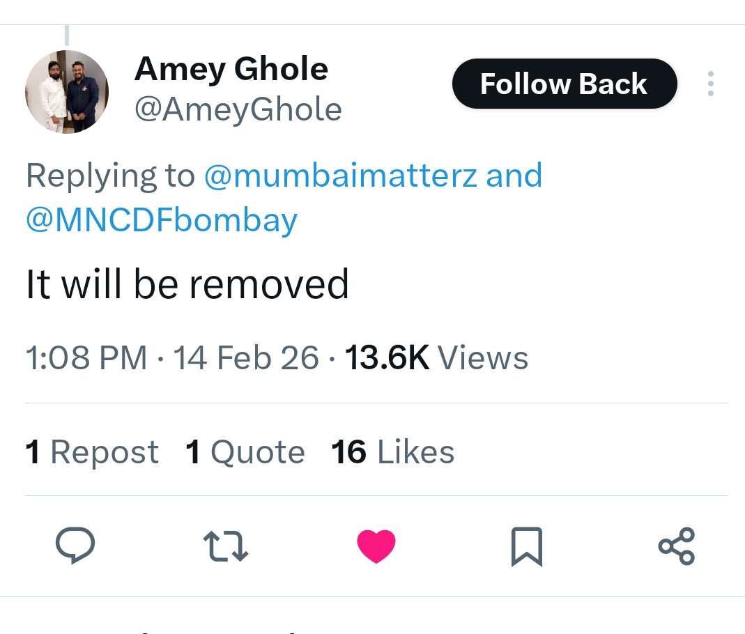 तुम्ही हे धोकादायक बॅनर कधी काढणार आहात? @AmeyGhole तुम्ही वचन दिले होते की तुम्ही ते कराल, पण पण आजही ते धोक्याचे आहे. खरंच तुमच्याकडून हे अपेक्षित नव्हते. आम्हाला खूप आशा होत्या. बॅनरबाजी टाळा, बदल घडवून आणा. #IllegalBanner 📌 Tilak Bridge, Dadar TT end. cc