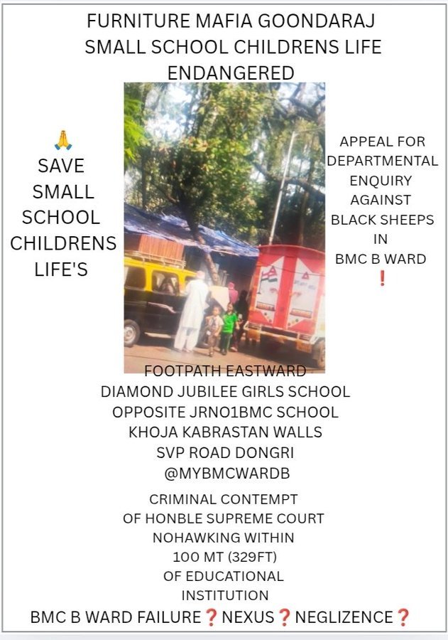 SVP ROAD DONGRI FOOTPATH EASTWARD DIAMOND JUBLIEE GIRLS & JRNO1BMC SCHOOL CAPTURED BY ENCROACHMENT MAFIA @mybmcWardB @DongariPS @SirjjmargPS #sleeping #failure #nexus total break down of law enforcement agency @rashtrapatibhvn @PMOIndia @Dev_Fadnavis @TawdeRitu @AmitShahOffice