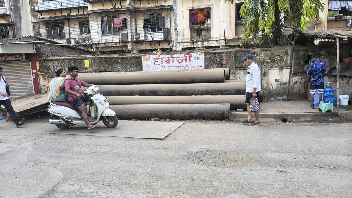 How can a walking footpath be covered with pipelines.Please answer @mybmcWardFN @mybmc.Just see the condition of the roads @MumbaiResident3 @mumbaimatterz @mybmc @SayeedBy @RoadsOfMumbai @mhadaofficial.The location is Sion Pratiksha Nagar