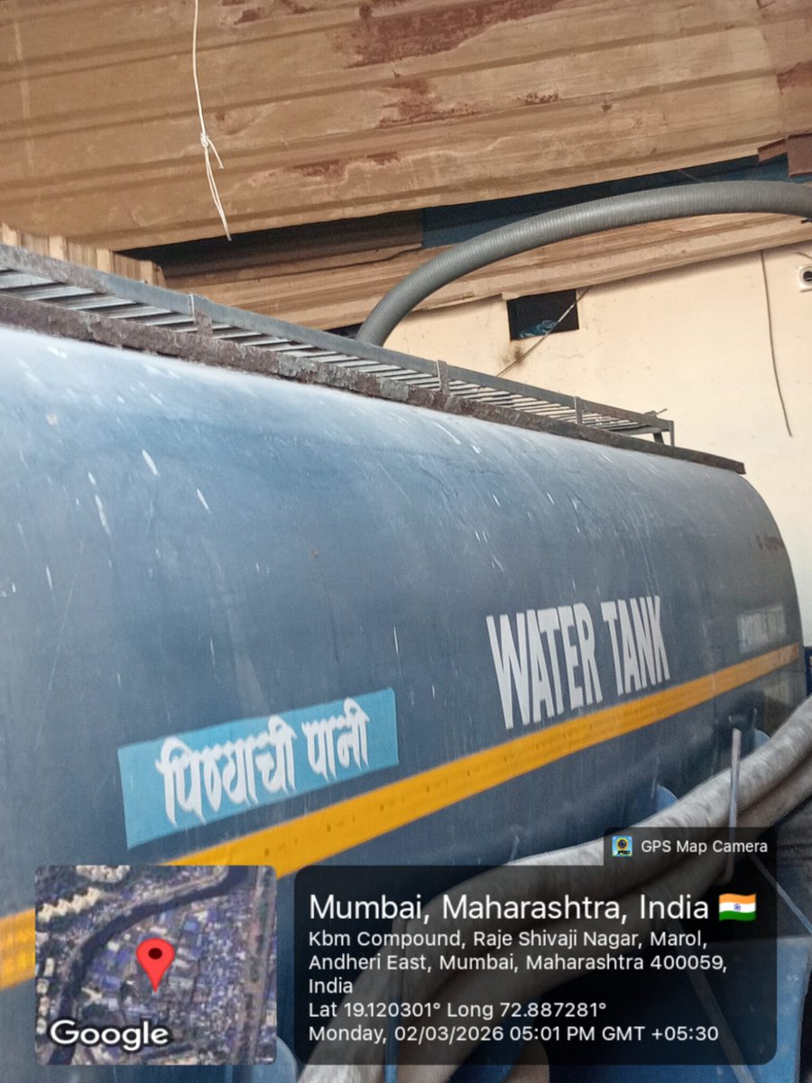 वॉर्ड नं.१५६ मधील केबिएम कंपाऊंड येथे बेकायदेशीररित्या टँकरद्वारे पाण्याचा व्यवसाय सुरूच आहे. कोणतीही अधिकृत परवानगी नसताना पाण्याची विक्री होत असल्याने लाखो रुपयांचा महसूल बुडत आहे. कृपया संबंधितांवर तात्काळ चौकशी करून कायमस्वरूपी कारवाई करावी. #illegalwatersupply @mybmcWardL