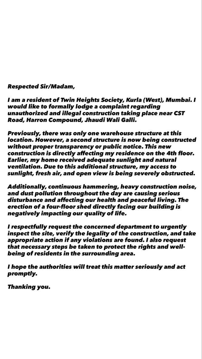 Illegal construction at CST Road, Harron Compound Kurla Wis blocking sunlight& airfor Twin Heights Society Noise & dust are harming our health its beyond human rights 4 floor godown Request urgent action from bmx @mybmc @humanrightsmum @mieknathshinde @MumbaiPolice @mybmcWardT