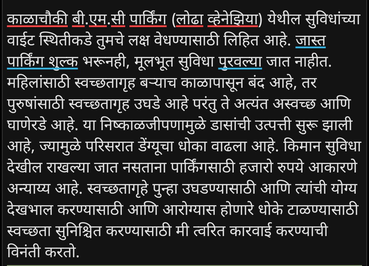 काळाचौकी येथील बी.एम.सी पार्किंगमधील शौचालय, अजिबात स्वच्छता नसणे आणि डेंग्यू डासांच्या वाढत्या प्रमाणाबाबत तक्रार @mybmc @mybmcWardFS