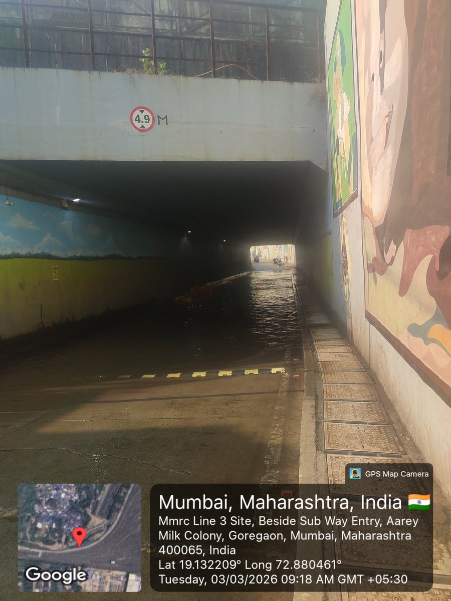 For the past week, severe waterlogging in Aarey Subway has created a hazardous situation for school students and pedestrians. This ongoing issue poses a serious risk to public safety and requires immediate attention.@CMOMaharashtra @MTPHereToHelp @mybmc @mybmcWardKE @MurjiPatel_