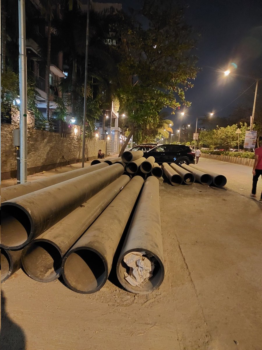 Construction material and pipes lying on the road since last many days, causing inconvenience issues to the pedestrians. This issue needs to be resolved. Location: Near Kavya Beach building and Hill View building Sec 8 Charkop kandivali West @mybmc @mybmcWardRC @sandhya_vipul