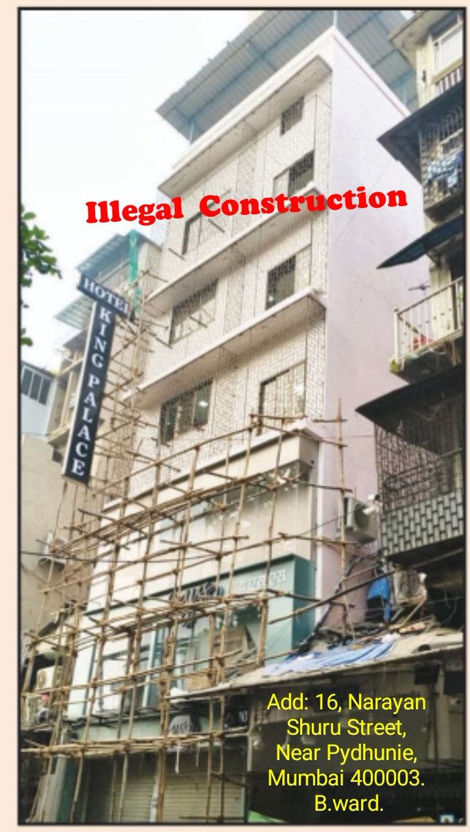 Serious complaint regarding the ongoing illegal construction at B. Ward, 16, Narayan Dhuru Street, Mumbai 400003, This unauthorized construction poses a major risk to public safety, structural stability, and fire compliance. Action appears stalled due to alleged collution of