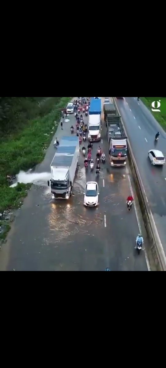 When a water pipe burst on a busy road in Vietnam, this truck driver parked his vehicle to shield passing drivers