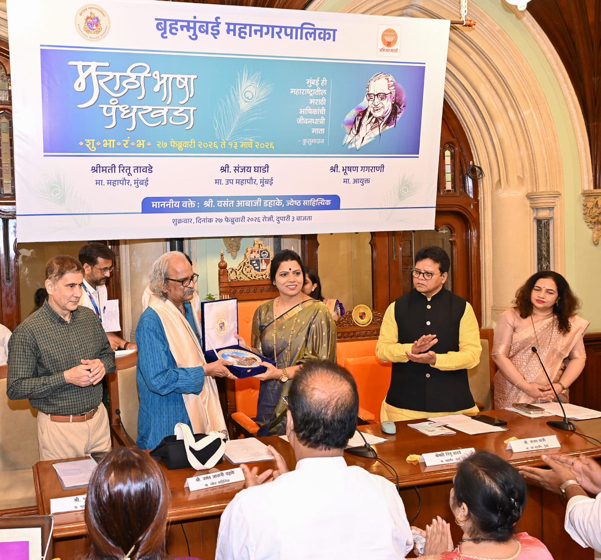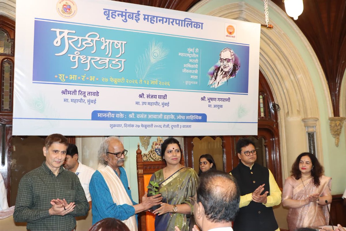 दि. 27 फेब्रुवारी 2026 लाभले आम्हास भाग्य बोलतो मराठी.....! ज्ञानपीठ पुरस्कार विजेते कवीश्रेष्ठ कुसुमाग्रज यांच्या जयंतीनिमित्त 'मराठी भाषा गौरव दिन' आणि 'मराठी भाषा पंधरवड्याचा' (२७ फेब्रुवारी ते १३ मार्च २०२६) शुभारंभ बृहन्मुंबई महानगरपालिका मुख्यालयात आज उत्साहात संपन्न